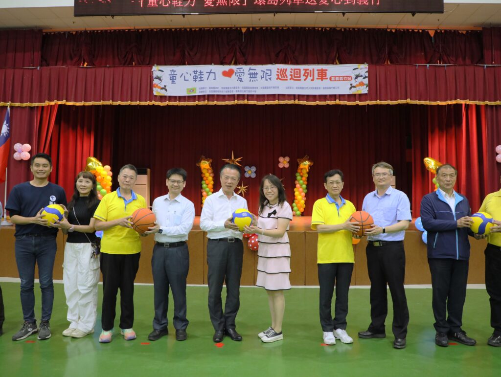 救國團「童心鞋力、愛無限」巡迴列車今(28)日駛入嘉義縣義竹國中,並捐贈義竹鄉624位國中小學童運動鞋、文具大禮包給一至四年級學童和小禮物給國小附設幼兒園的孩子們,另外提供襪子、籃球、排球、米等關懷物資,讓學子們提前度過充滿愛的兒童節。