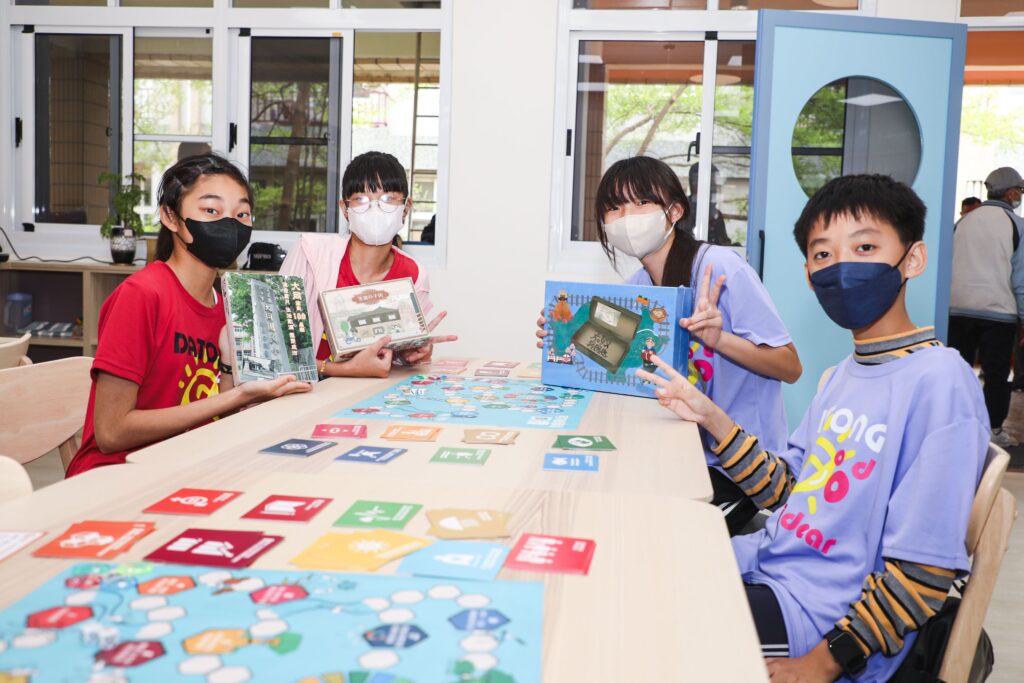 夢飛館規劃有「桌遊遊戲角」、「萬國旗遊歷角」、「國際交流站」,搭配AR、VR裝置,讓孩子進入虛擬與擴增實境中學習外語;學校更推出「大同流金100」、「走遊朴子街」及「嘉鄉探險趣」3款桌遊,透過遊戲認識在地文化。