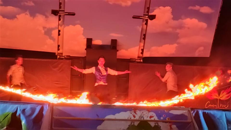 「彰化囡仔好幸福─114年親子劇場鄉鎮巡演活動」持續為全縣親子帶來精采演出!今日(3/29)晚上7點,巡演來到伸港鄉福安宮,特邀即將成真火舞團帶來震撼人心的《火爾摩莎》,彰化縣長王惠美親臨現場,與近3000名觀眾一同沉浸在火焰與戲劇交織的視覺饗宴之中。隨著火舞者舞動火焰,現場驚呼連連,為孩子們帶來難忘的夜晚。
