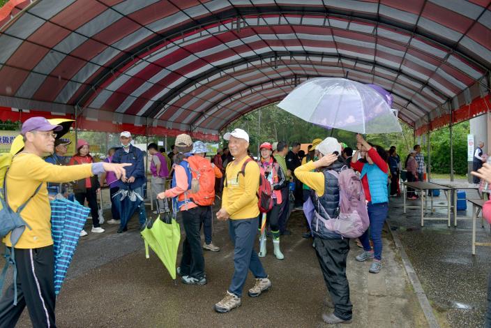 活動一開始飄起小雨,但民眾熱情不減,共計約有600人參加,現場也準備有輕便雨衣、熱茶供健走民眾取用,另外還有客家美食、在地小農、DIY等攤位,讓參加者有吃又有玩,在柚花香中渡過愉快的假期時光。