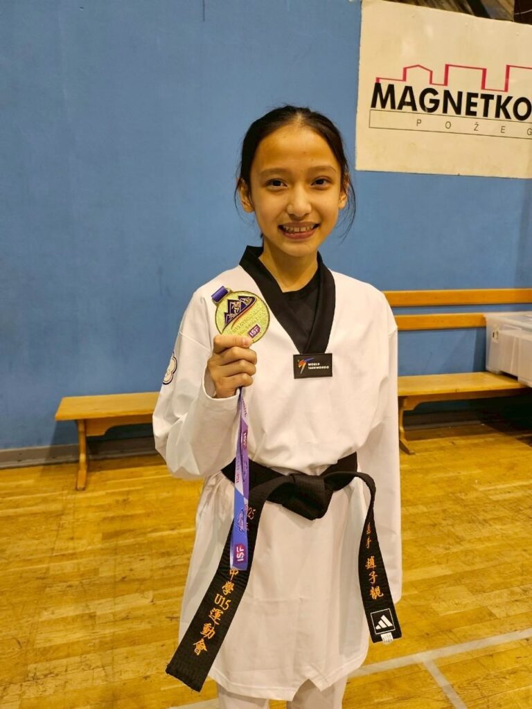 竹東國中趙子靚初登國際賽 勇奪U15世中運跆拳道金牌