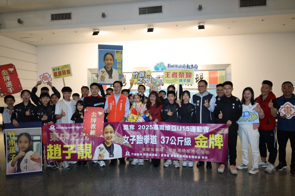 2025年世界中學生U15運動會跆拳道代表團凱旋歸國,新竹縣國手趙子靚昨(15)日晚間抵達國門,新竹縣長楊文科與選手教練及親友團一同熱情接機,為趙子靚初登國際賽即摘下金牌喝采,並安排2004年雅典奧運跆拳道金牌國手陳詩欣驚喜現身給予鼓勵,趙子靚哽咽表示「感謝所有支持她的人,她會繼續努力!」。