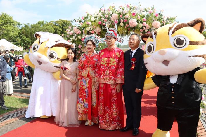 參加桐花婚禮的佳偶們,在縣府秘書長陳斌山及夫人黃惠美、苗栗地方法院庭長魏正杰福證下,許下愛的誓言;南庄鄉長羅春蓮、造橋鄉徐連斌、三義鄉長呂明忠、新人的親友等共同見證36對佳偶溫馨浪漫的幸福時刻,給予永恆祝福。
