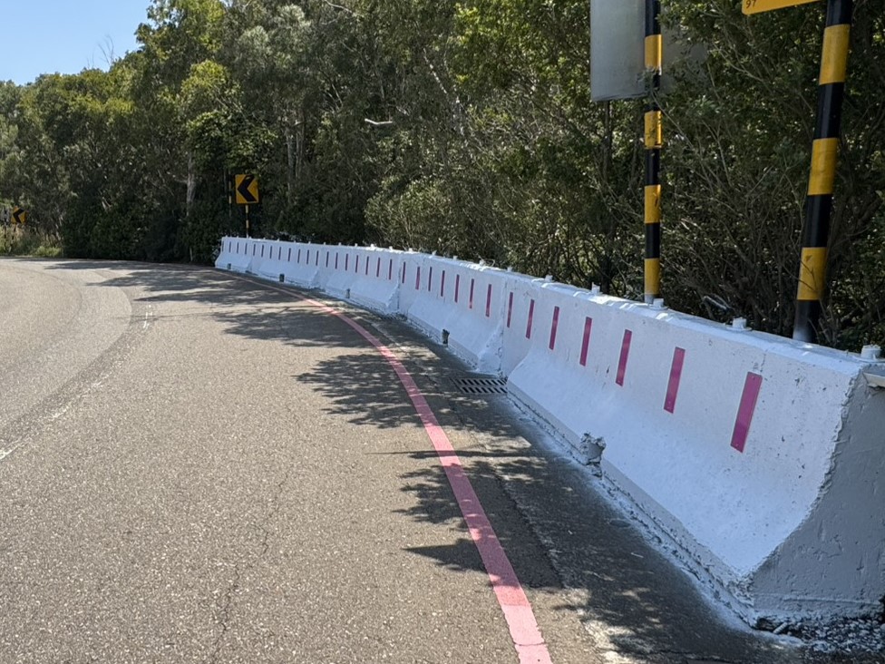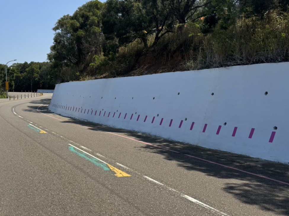 陳局長說明,為持續營造友善行車環境並強化地方觀光特色,市府加碼推動「粉紅公路」計畫,將於華山路沿線的路燈桿增設粉色風格柱頂燈,並將原本灰色的水泥護欄及擋土牆粉刷為白色,搭配節能LED太陽能燈具與粉色反光片,提升夜間能見度與行車安全。