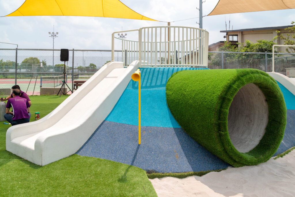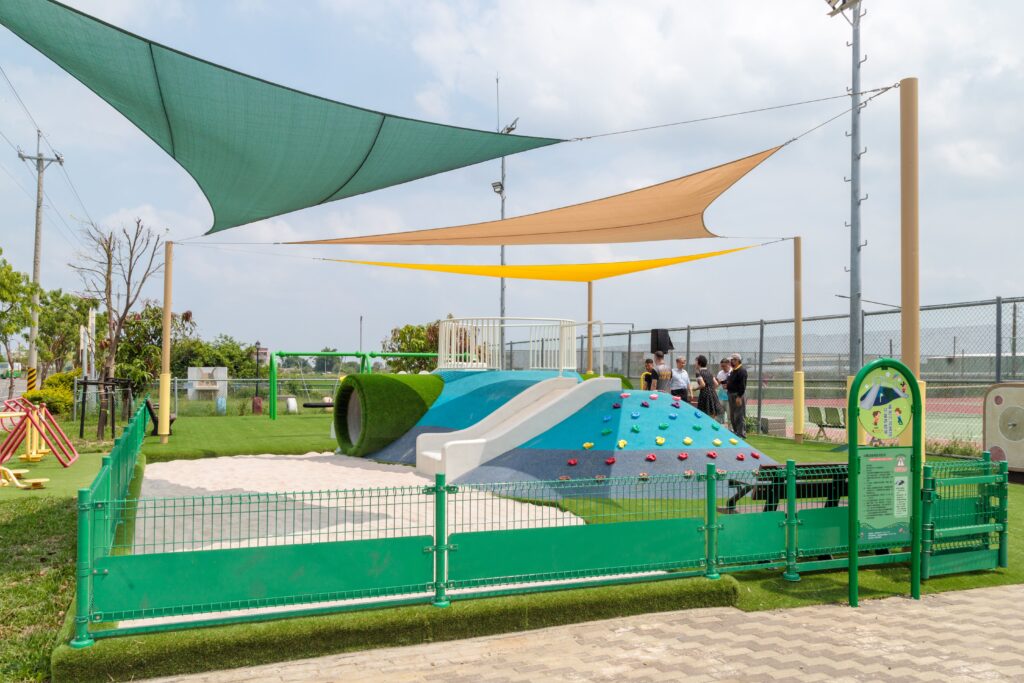 遊戲場緊鄰網球場、籃球場及寵物公園,充分結合多元休憩設施,提供不同年齡層與需求的孩童及毛小孩,共享友善且具包容性的休閒活動空間。民眾莊小姐表示,以往要到外縣市才有多元設施給孩童玩,如今新港也新建兒童遊戲場,可就近帶孩子來放電,舒適又便利。
