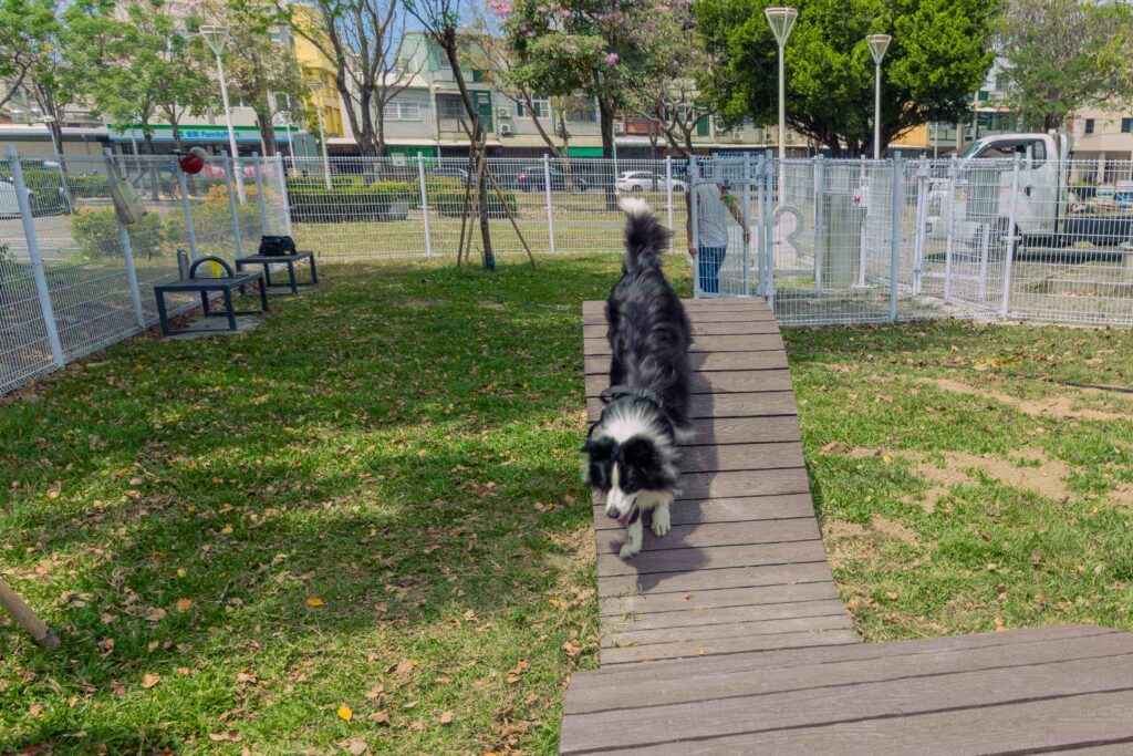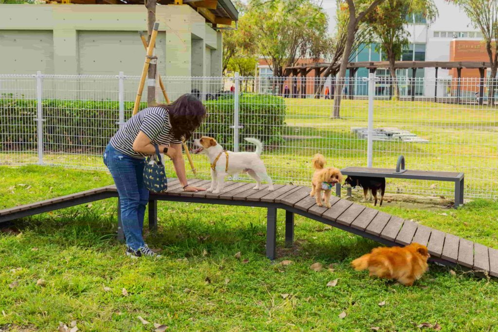 寵物活動區依犬隻體型分為大小犬活動空間,配備圍網、大小涵洞、獨木橋、休憩座椅、垃圾袋箱、景觀高燈、告示牌、入口意象等設施,並增植喬木「苦楝」以提升遮蔭效果,同時增設夜間照明與休憩座椅,提升整體舒適度與安全性。原本擁有圖書館、兒童遊戲區等設施的彌陀公園,機能更加豐富多元,是全家大小與毛孩共享美好時光的新選擇。