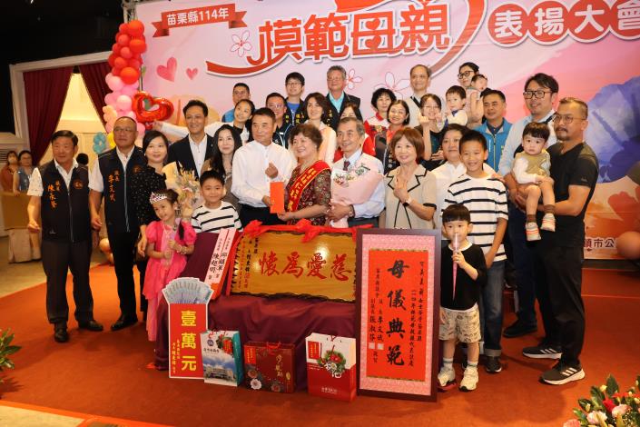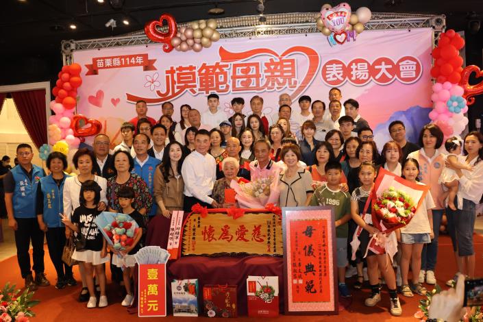 苗栗縣模範母親表揚大會竹南登場!頒贈21位模範母親「慈愛為懷」匾額表揚
