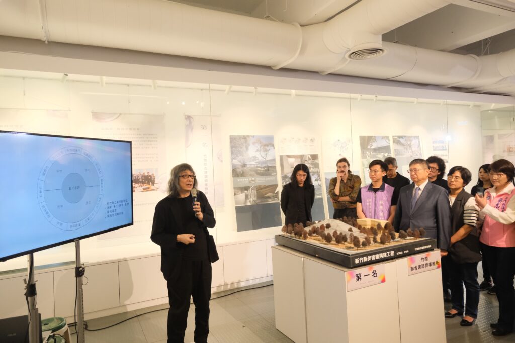 文化局表示,新竹縣美術館未來將集結建築美學、藝術展示及公共遊憩功能於一體,首獎設計強調與周邊環境的有機結合,並注重綠色建築的實踐,汲取竹北地區早年合院建築為靈感,以當代的方式詮釋轉換,賦予美術館開放性,與綠帶和水域諧調融合。