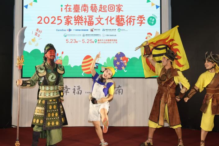 「2025家樂福文化藝術季」即將在 5月23日至25 日在新營體育園區登場,為民眾帶來三大國家級團隊接力演出的夜戲、精采不斷電的在地團隊日戲演出、集合環保概念的上百攤市集、永續玩偶大遊行、以「美好蛋生」為主題的展覽及千人立蛋挑戰等活動。夜戲團隊包括「十鼓擊樂團」、「即將成真火舞團」、「紙風車劇團」 ,日戲團隊包含「蒙納米豎琴樂團」、「韋瓦笛室內樂團」、「蘭花刀」、「樂耘舞集」、「磐果舞蹈劇場」、「SFC 街舞團 X POWER SUMMER 國高中職聯合展演」、「社團法人中華愛悅公益慈善發展協會」、「孩子的書屋 書屋鼓隊」等。