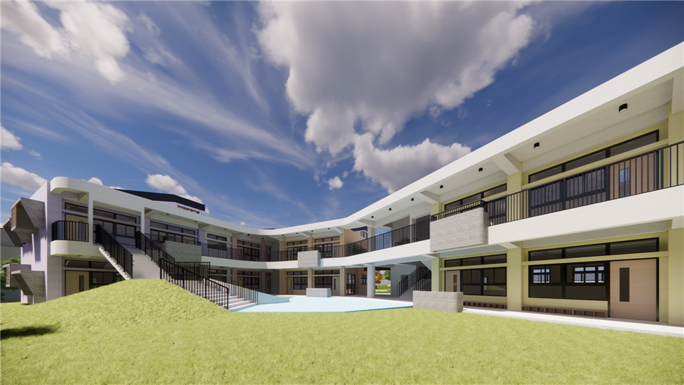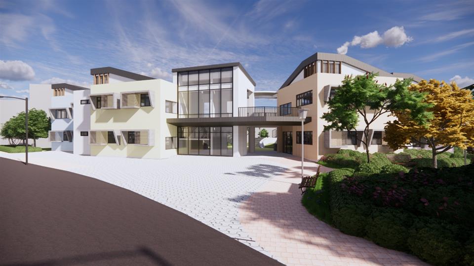 新建幼兒園將採聯合幼兒園模式規劃,並以開放式空間融入社區環境,建築物本體為聚落型量體設計,以單純、清新、溫暖之牆面色彩融合簡潔建築風格,創造優質開放的活動及學習空間,規劃1樓建築空間包含3間活動室、行政辦公室、健康中心及中央廚房等,2樓建築空間含5間活動室,其戶外也有開闊空間及各式綠色植栽,可供幼兒自在活動及近距離觀察大自然。