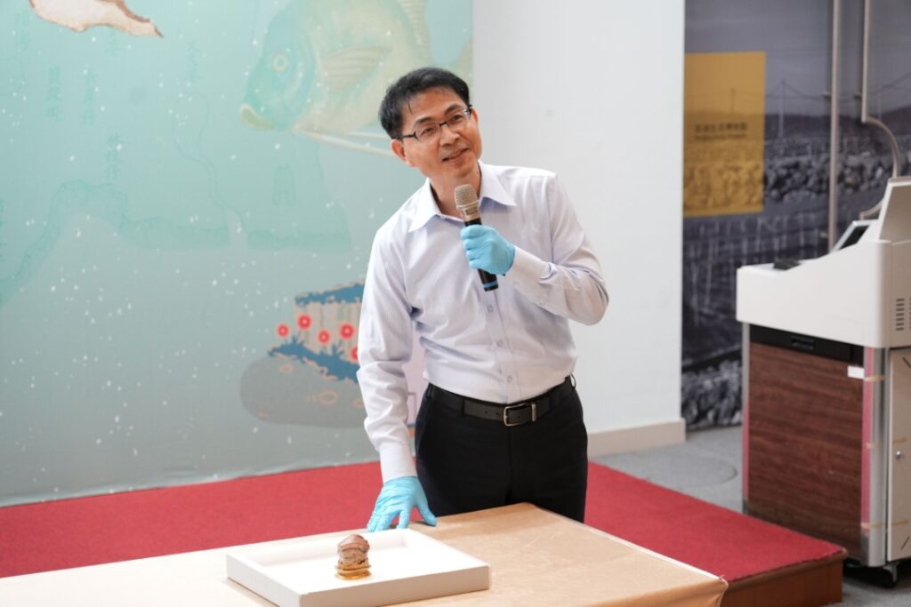 澎湖縣政府與國立故宮博物院合作,推出「大航海時代的海上明珠—故宮國寶聚澎湖」特展,15件故宮珍貴典藏將於5月17日在澎湖生活博物館正式展出。今(9)日下午舉行文物開箱記者會,澎湖縣長陳光復、故宮副院長黃永泰暨故宮團隊、議員蘇陳綉色、副縣長林皆興、秘書長楊書舜、文化局長陳鈺雲、旅遊處長陳美齡、工商業發展投資策進會總幹事張豪澤及財團法人澎湖縣文化基金會董事等貴賓,親自見證〈清 肉形石〉、〈明 成化 鬥彩雞缸杯〉、〈清 乾隆 右旋白螺〉三件重量級國寶現身。
