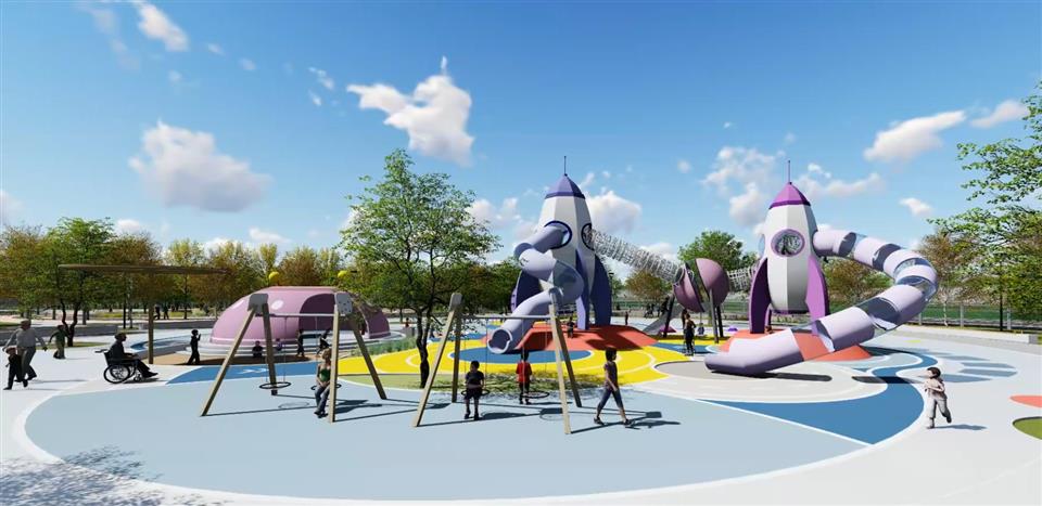 王縣長表示,彰化26個鄉鎮市中大村鄉是非常富庶的鄉鎮,大村鄉的優勢是緊臨員林,很多人如果不住在員林市區,也會選擇來大村,因此人口數持續增加,賴志銘鄉長很有心,看到員林有風雨球場、兔馬鹿公園,也想要讓大村的孩子及鄉親,有一個優質的休憩空間,也特別感謝議長謝典林及所有議員的支持,才能順利打造這座滿足所有年齡層需求的共融式兒童遊戲場,相信完工後將能達成「空間平權」與「世代共融」的休憩場域,讓孩子們能夠在地方上快樂遊玩成長。