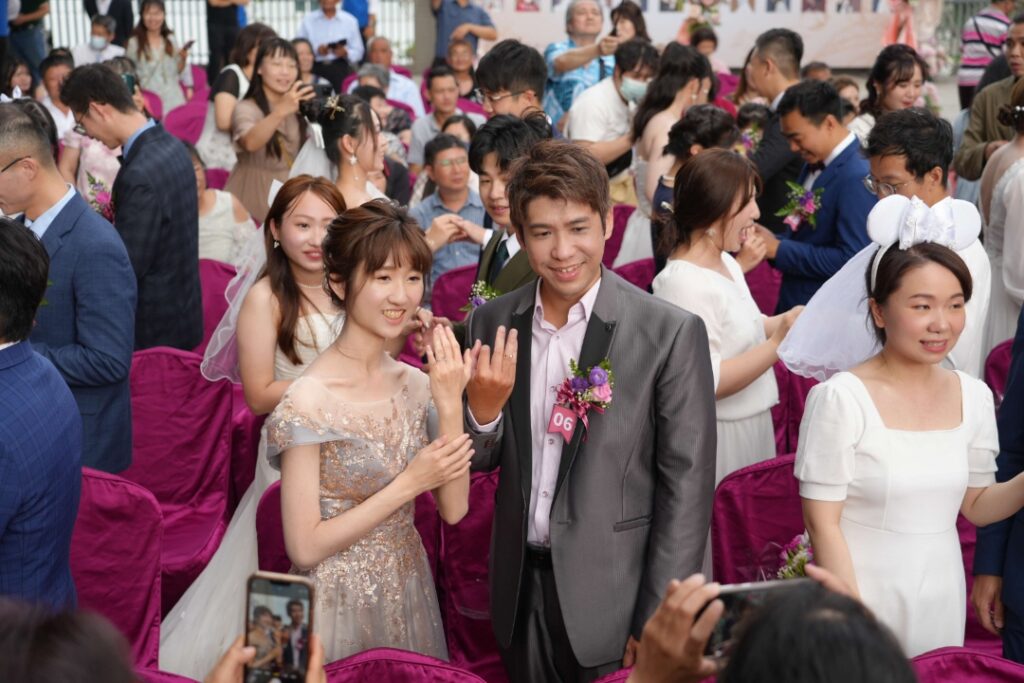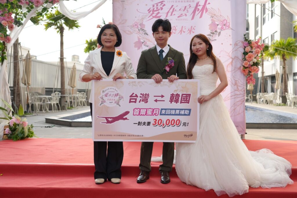 今年集團結婚以「愛在雲林 共築未來」為主題,35對新人在親友與貴賓的見證下攜手步入紅毯,彼此宣誓攜手共組幸福家庭。縣府更特別準備每對新人價值超過萬元的精緻伴手禮,及最大獎項為首爾來回蜜月機票補助3萬元,以及55吋電視、烘衣機等模彩好禮,讓新人不僅收穫愛情,更滿載而歸。