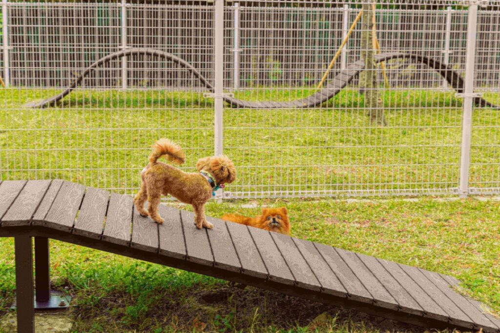 公園處表示,梓官「綠3寵物活動區」設置各種毛孩專屬設施,包括安全的獨木橋、波浪板,讓毛孩盡情奔跑翻滾的柔軟草地,打造毛小孩社交、放電、快樂奔跑的理想樂園。同時,一旁舒適座椅區讓陪伴的飼主在海風中輕鬆歇歇腳、欣賞毛孩可愛模樣。