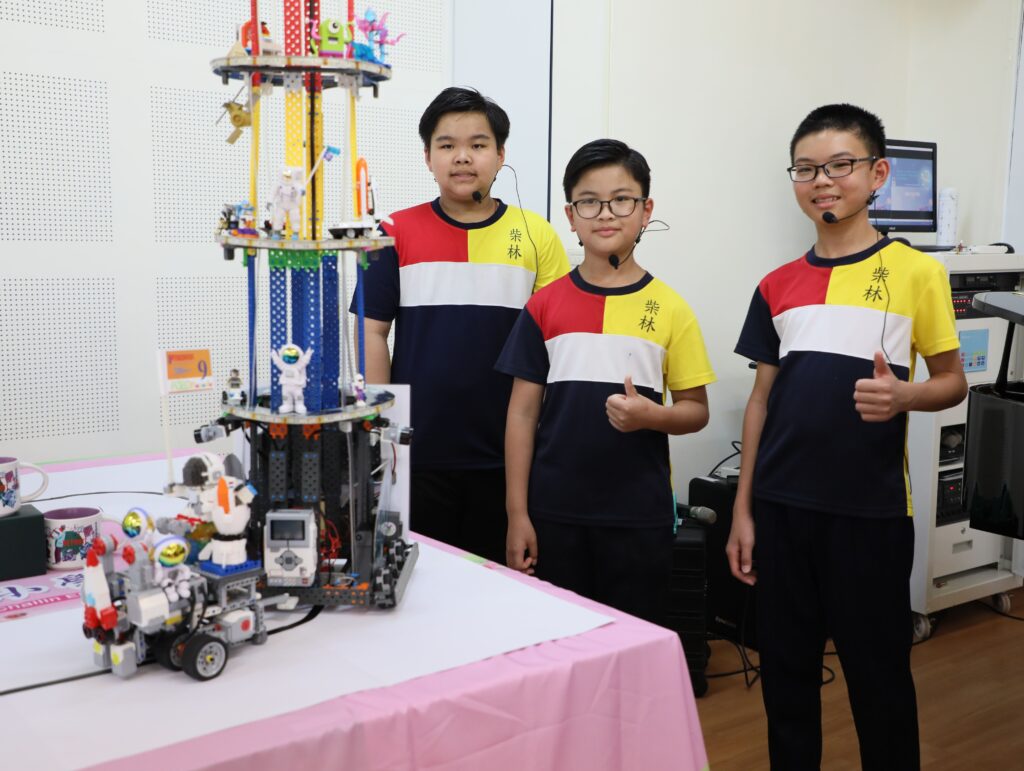 指導教師張益嘉主任說明,今年世界賽的主題為「穿越宇宙」(Across the Universe),學生用「星際策略聯盟 環保永續太空」為概念,結合SDGs指標設計解決太空垃圾問題的機器人,獲得評審肯定。