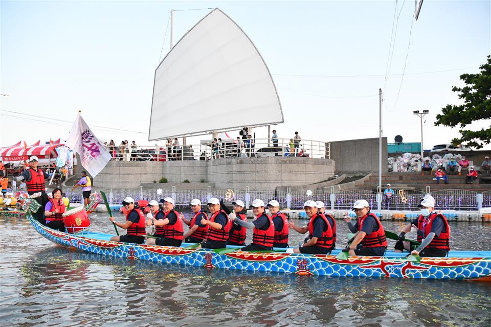 王縣長表示,鹿港是文化古都,傳統藝術的重鎮,48年前鹿港在地青商及地方仕紳推動「鹿港慶端陽」,名列交通部全國十二大節慶活動之一,今年龍舟賽創新高有126隊參賽,今天天氣風和日麗,鄉親在岸上吶喊加油時也能感受到徐徐微風吹來,看著精彩賽事,絕對是一大享受,特別謝謝中部生活圈的夥伴,台中市政府、南投縣政府,鹿港鎮公所、福興鄉公所的協助,以及彰化縣議會、各公所、各級民意代表一起參與,特別感謝龍山寺、天后宮等在地宮廟、地方企業與民間社團的鼎力支持,還有很多志工的參與,鹿港慶端陽活動,除了可看龍舟賽,還有小鎮光影藝術節、魯班公宴展出等,歡迎來悠遊鹿港小鎮,體驗獨特節慶魅力。