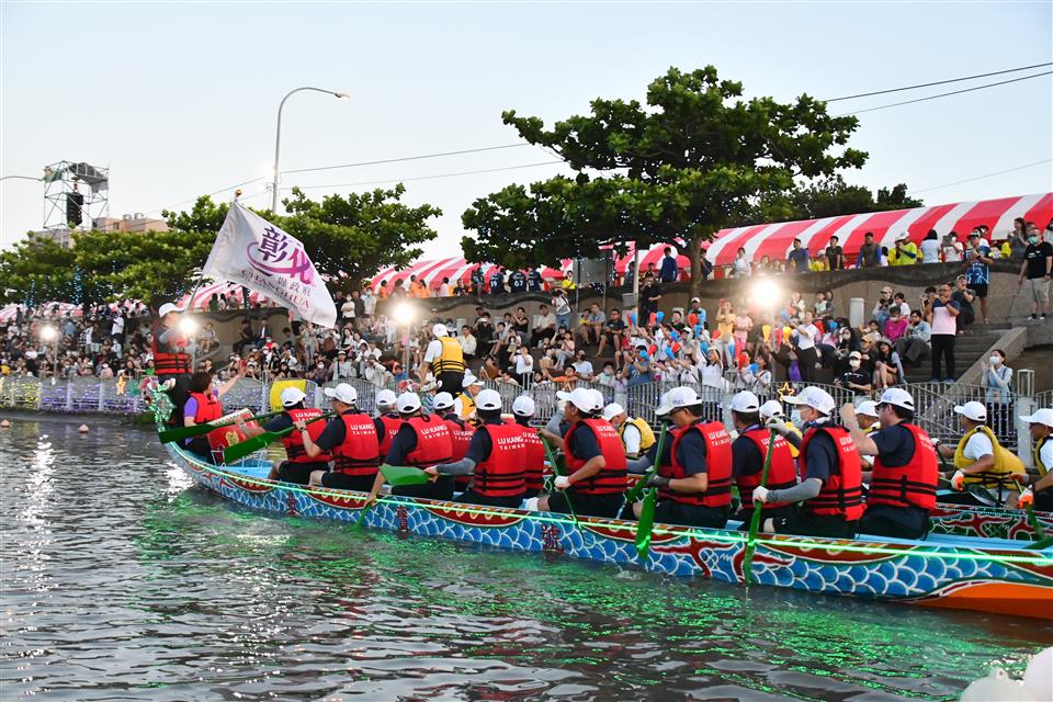彰化縣龍舟委員會主委凃淑媚議員表示,鹿港慶端陽是全國十二大節慶之一,也是全國唯一結合傳統文化與體育賽事的節慶,兩旁設立的看台讓大家能近距離感受比賽的熱血沸騰,不論是水上激烈的賽況,還是夜晚燈光點亮後的璀璨景象,都能帶來截然不同的感動,系列活動從早上的魯班公宴開始,漫步在鹿港小鎮的古色古香老街,感受獨特的歷史氛圍,然後再來到龍舟賽會場,這幾天到鹿港,從早到晚,不論是視覺上、味覺上,還是身歷其境的感動,所有美好的體驗都將一次擁有,絕對讓大家不虛此行,晚上還有精彩的演唱會,希望大家能從早玩到晚,盡情享受鹿港的魅力。