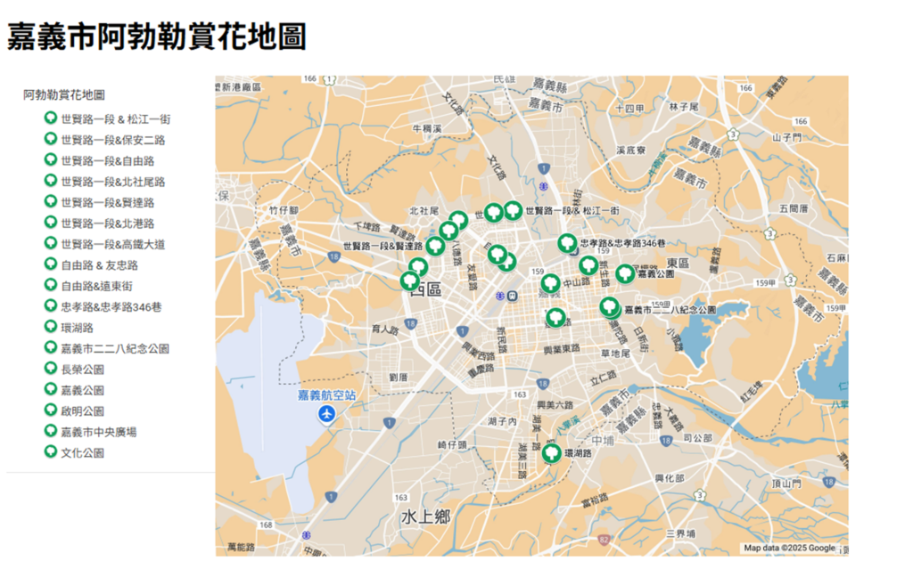 市府建設處也公開賞花熱點,提到當遊客、市民走進中央廣場、啟明、嘉義、長榮、文化、二二八等公園,你會發現它不只是拍照背景,而是一種讓人沉靜的節氣氛圍。有人在樹下讀書,有人帶孩子嬉戲,也有人只是靜靜站著,享受一場與季節的約會。