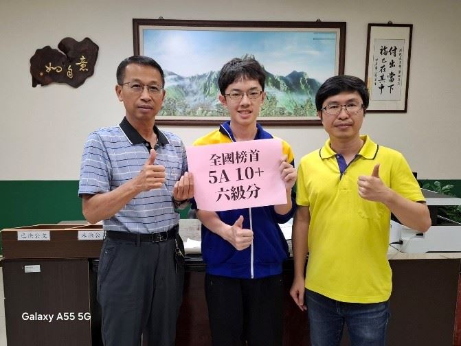 國中教育會考傳捷報,梅山國中劉郁翔勇奪嘉縣會考狀元