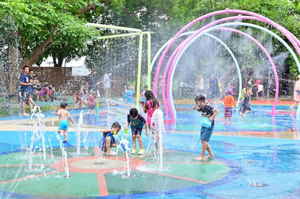 觀旅局表示,戲水區內有水霧水幕噴水設施、隧道噴泉、火山噴泉、葉子噴柱及2座噴水槍等戲水設施,一旁也貼心設置驛站供民眾更衣淋浴,大幅提升親子使用的安全及舒適性,這些精彩的設施既能讓小朋友玩得開心,也為大人們提供一處避暑放鬆的好地方。