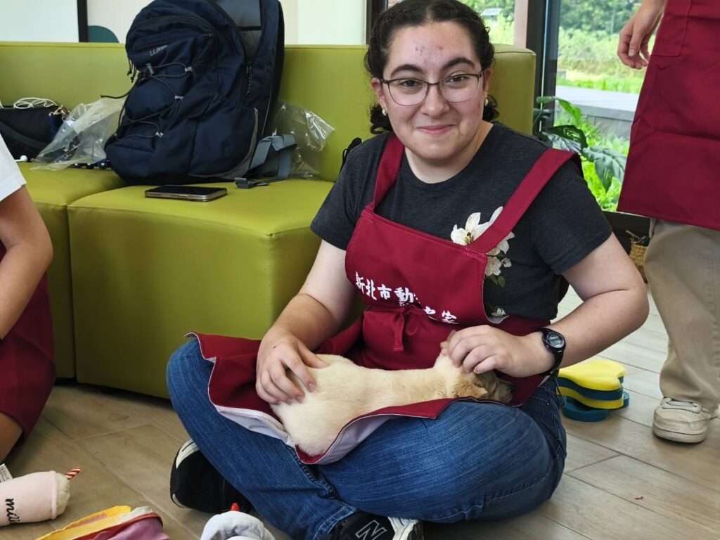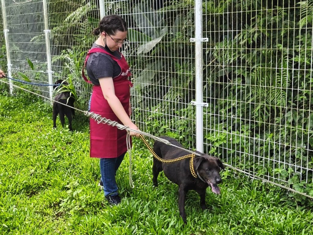 其中,來自美國紐澤西州、主修建築的學生 Anna,首次與流浪犬面對面接觸,體驗令人難忘。Anna 從小學習中文,聽說讀寫皆流利,卻從未飼養過寵物,甚至坦言曾對狗有些畏懼。他表示,當我站在犬舍前,接過動保員遞來的狗繩,內心其實很緊張,但當那隻黑色米克斯犬靠近我,輕輕用頭蹭我的手臂時,那份溫柔瞬間化解了我的恐懼。她深刻體會到,信任不需言語,動物也能以最純粹的方式傳達情感。