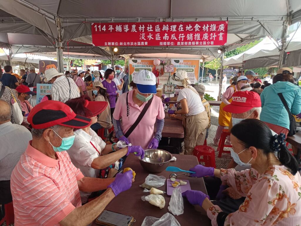 今明2日在淡水金色水岸辦理大南瓜比賽主場展售會活動,現場有大南瓜及全國農漁產品販售、南瓜闖關抽好禮活動、南瓜圓等各式南瓜DIY體驗,還有青農許元耀、盧苡甄、張哲岳帶來的青農講座。現場市集於單一攤位消費滿300元將能獲得南瓜主題明信片及南瓜彩繪體驗券,可以用來參加旅學堂南瓜遊程抽獎(價值1200元)及進行南瓜彩繪體驗(360人次)。展售會結束後則會將部分參賽南瓜移至福容大飯店、淡水漁會魚藏餐廳、新北市農會、希望廣場、文山農場展示,展示至6月底。本次合作旅遊業者「旅學堂」也推出5梯次(6/22、6/29、7/20、7/26及7/27)遊程,帶領遊客沿著淡海輕軌走訪當地歷史特色景點,前往當地農場欣賞田園風光、由青農導覽南瓜知識,再於農場內品嚐南瓜料理,進行南瓜派DIY食農教育活動,有吃、有玩又能感受淡水文化特色。