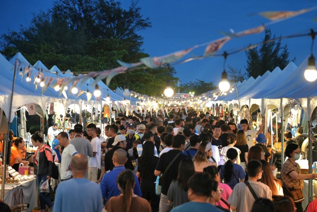 傳播處說明,此次大鮪市集以日式鳥居的入口意象,結合日式節慶和滿載漁船等元素,吸引不少大、小朋友拍照打卡,除了精彩的舞台演出,市集方面與「朋來市集」合作,並邀請眾多在地品牌、各式風格餐飲與手作品牌,包括:「我覺得可以氣泡飲」、「鹹鹹美代子」創意手作甜點、「WHOOPEE無比漢堡」純手打肉排漢堡以及東港在地「味益食品」、「暖心刈包」等多達百攤商家。