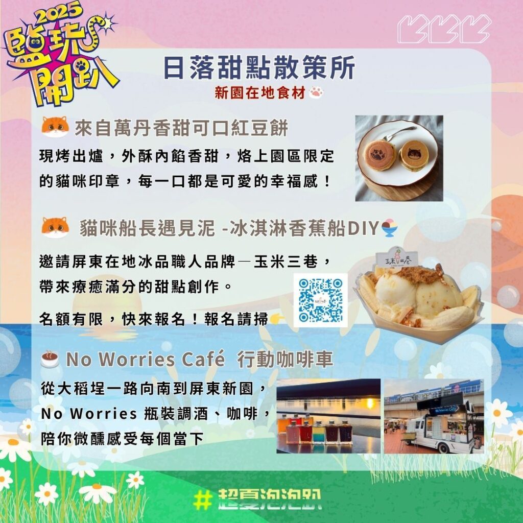 歡迎民眾暑假一同前來感受屏東新園嶄新的海港魅力,在2025鹽琉開趴留下屬於夏日的美好回憶,詳細活動內容請上官網:http://www.2025letsgoparty.com/,持續追蹤「屏東GO好玩」與「屏東GO交通」臉書、IG 及Threads,並歡迎下載「屏東GO好玩」、「屏東ㄟ公車」APP 掌握第一手活動訊息。