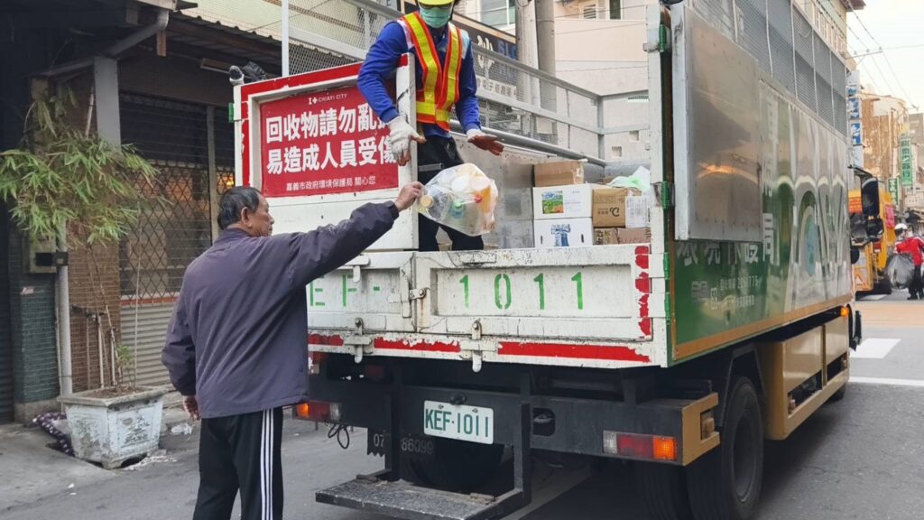 嘉義市目前已有11線試行每週週一、週二、週四、週五提供4天的回收服務,但市民大部分回收物仍集中在週一或週二,為不讓資源回收車過載,清潔人員處在危險環境中作業,請市民資收物分散至週四或週五回收,減少車輛過載情況。而民眾最常使用黑色塑膠袋裝物,危險物品容易藏在其中無法辨識,提醒民眾請使用透明回收袋,危險物品另外打包,提醒並交予隊員。