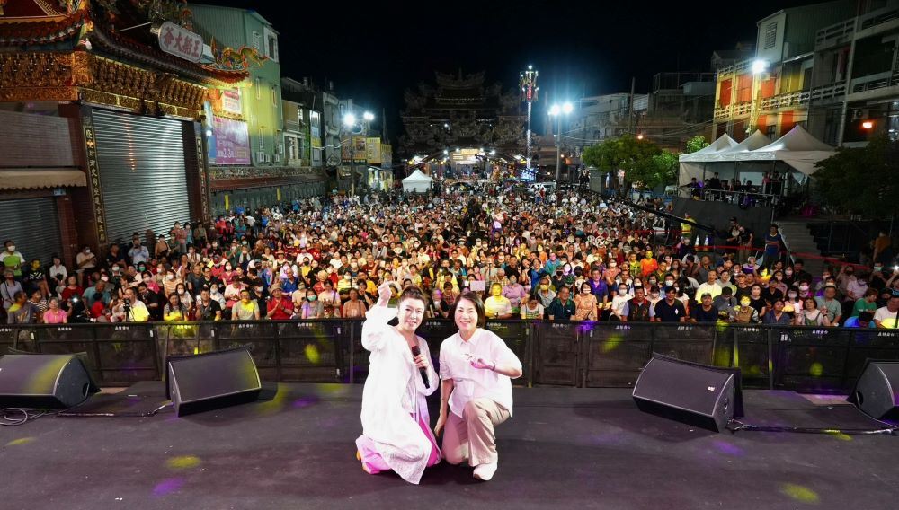 2025屏東黑鮪魚文化觀光季21日晚間於東港東隆宮前廣場舉辦「黑鮪魚季經典之夜」,縣長周春米到場與鄉親們一同欣賞趙詠華、南方二重唱、陳艾湄及周子寒等實力派歌手帶來的經典旋律,更首度邀請「台灣最美麗的歐巴桑」陳美鳳南下演出,壓軸登場驚豔全場,讓現場氣氛沸騰到最高點。