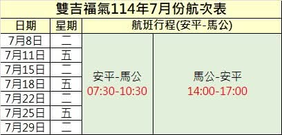 台南安平、澎湖馬公航線7月8日復航!航線將由雙吉福氣號行駛