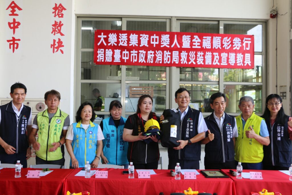 東勢區大樂透中獎團體捐贈中市消防局救災裝備 助提升救災與宣導量能