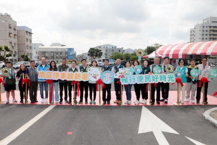 台南市政府為紓解南區金華市場、新興國宅區域的停車需求,與中央國有財產署合作闢建新興新建停車場,新增248席小客車停車格位,即日起至6月30日開放免費試停。今(26)日辦理啟用典禮,市長黃偉哲表示,市府將持續與國產署合作在停車熱區闢建停車場,為市民打造便捷的停車環境,助益當地整體居住環境品質提升。