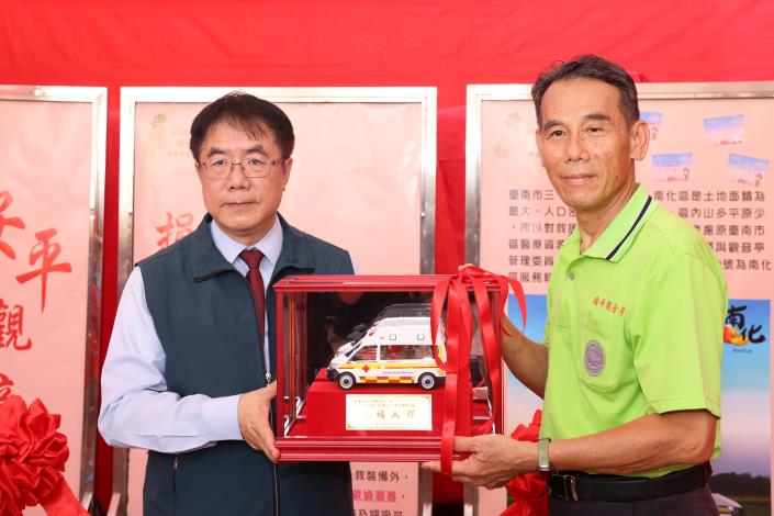 黃偉哲感謝安平觀音亭主委顏東賢及廟方幹部,秉持觀世音菩薩慈悲濟世的精神,捐贈救護車支援偏鄉急救。他代表全體市民向觀音亭表達誠摯謝意,此次捐贈不僅強化第一線的緊急應變能力,也讓民眾在緊急時刻能及時獲得適切的醫療協助。