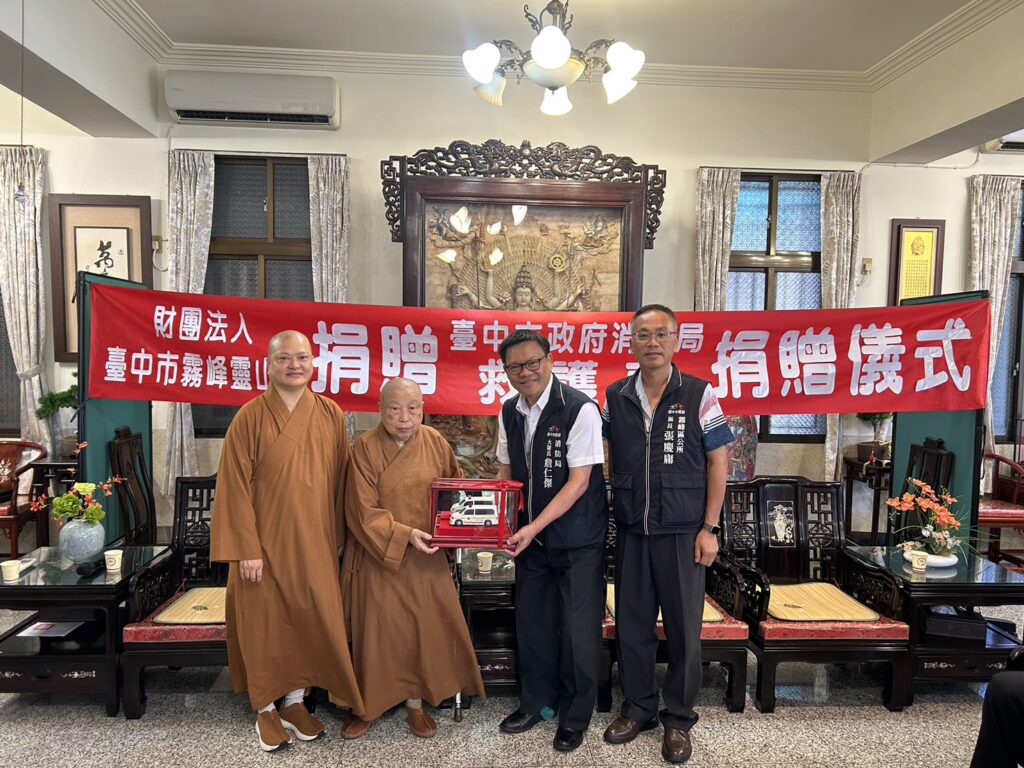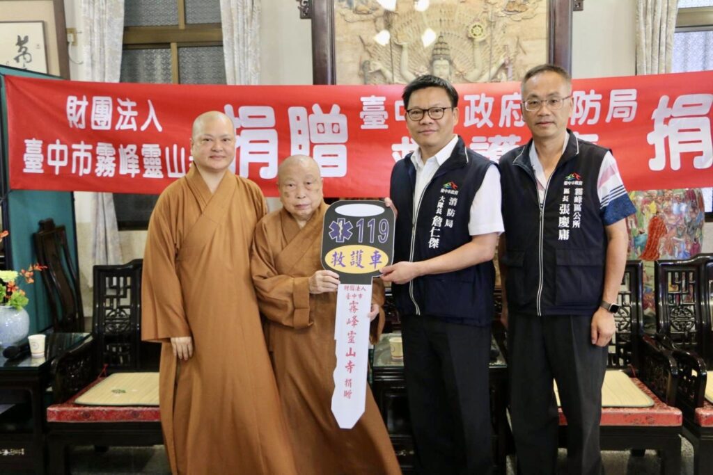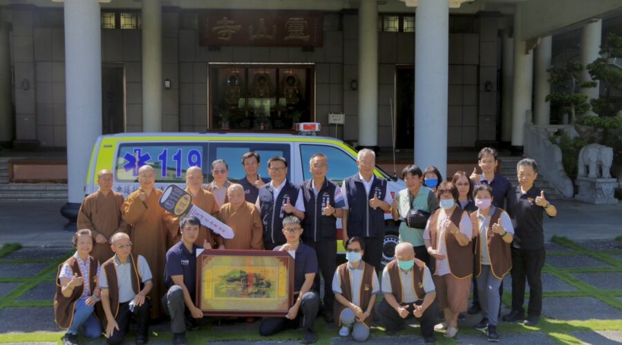 為實踐佛教「慈悲為懷、護生為本」教義,霧峰靈山寺今(27)日捐贈台中市政府消防局第三救災救護大隊霧峰分隊救護車1輛及相關救護器材1批,此輛救護車搭載全台最新電動擔架床自動安全舉升系統(POWER-LOAD),期盼透過實際行動,發揮佛教慈悲精神,挽救更多寶貴生命,嘉惠社會大眾。消防局表示,此救護車將極大提升霧峰分隊急救能力,為市民提供更及時專業的醫療救助服務。