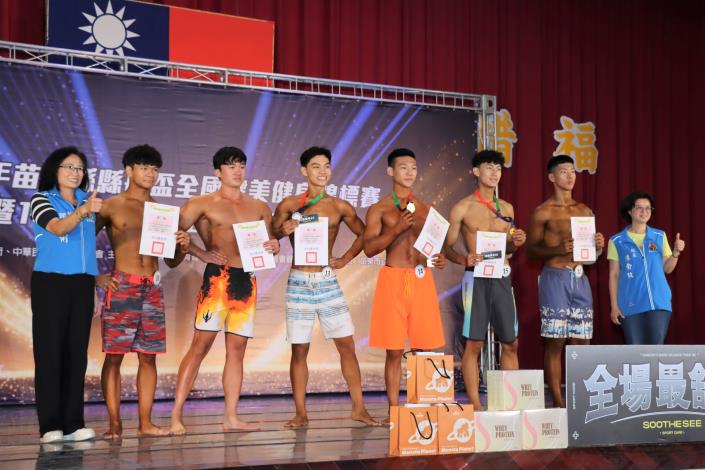 今天下午的開幕儀式,副縣長邱俐俐與縣議員徐筱菁、苗栗市民代表劉岳泓、苗縣體育會總幹事周仁聖、健美委員會主任委員江明彥、總幹事彭偉堯、縣府教育育處督學張又文、苗栗國中校長陳俞攸、家長會長高逸馨等人為選手們加油打氣外,並分別頒發國中男子形體、高中男子形體、青少年男子形體、男子健身模特兒、女子運動模特兒、男子新秀形體、男子資深健美組等項目的獲獎選手獎狀、獎牌和紀念品。