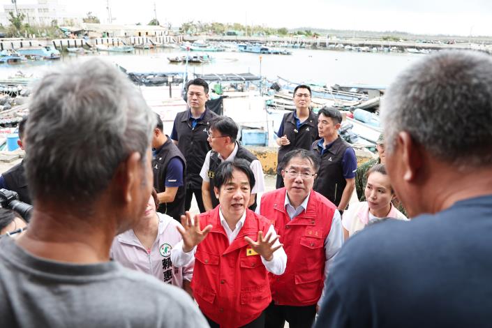 賴清德總統指出,此次因丹娜絲颱風路徑與過往不同,造成台南農業受到相當嚴重災損,農業部已公佈農產業、漁港區域漁船(筏)及林業副產物等天然災害現金救助條件,他強調政府將秉持同理心,從優、從速、從寬盡速辦理後續復原作業與補助申請,有關於未來漁港的防護措施,中央將會與各部會、台南市府持續進行協調討論,針對相關維護設施研擬合適方案,保障漁民生計與權益。