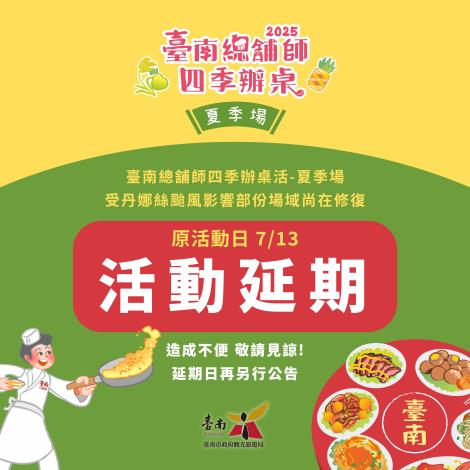 《臺南總舖師四季辦桌‧夏季場》延期舉辦(原訂7/13辦理,延期另行公告)