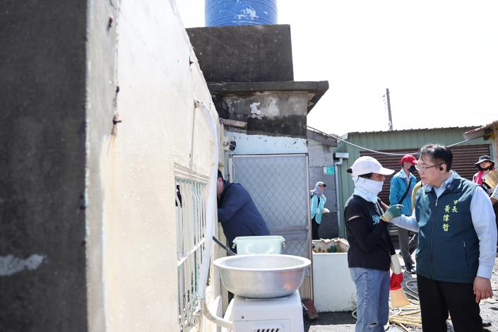 在七股區,民眾反映因地勢低窪,導致部分地區通訊不時中斷,影響聯繫與救援調度效率。黃偉哲當場指示相關單位儘速改善通訊設施,確保災後聯繫順暢、重建工作有效推進。