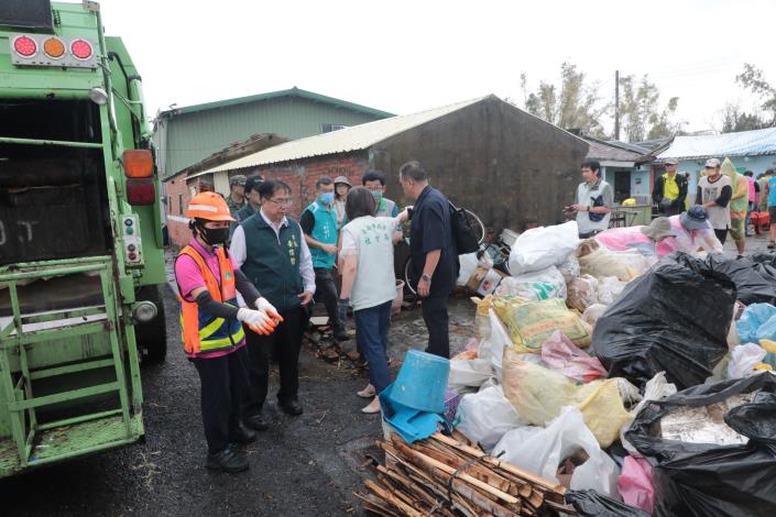 由於目前災區仍有部分長者獨居,黃偉哲於慰問民眾時特別指示,要求各公所務必留意並補充民眾日常所需用品(如食物、飲用水等),以確保基本民生需求。訪視期間恰逢垃圾車到場清運,黃偉哲亦親自協助搬運廢棄物上車,展現與市民同心、共同清理家園的決心。