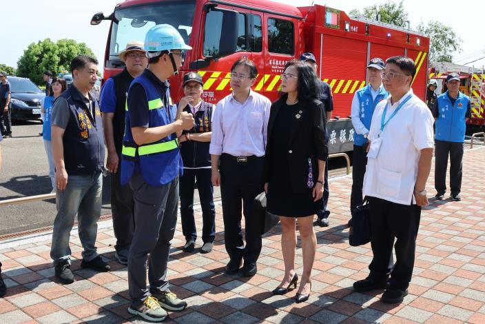 副縣長依序前往附近防空避難處所「愛侶安縵社區」、頭份市衛生所與頭份市下興里活動中心成立的救濟站與急救站,由工作人員演示相關因應作為,另於永和山水庫監控管理中心實施戰災搶救演練;最後由副縣長等人頒發感謝狀予參加演練機關、各事業機構,感謝所有參與演練人員配合協助。