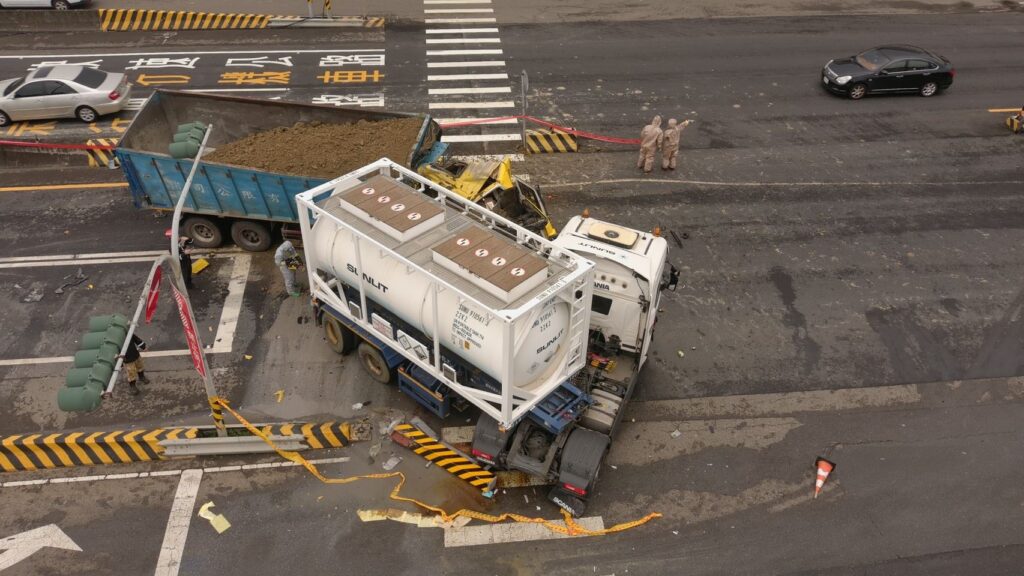 竹縣西濱路二段化學槽車車禍 封閉南下路段請用路人配合引導