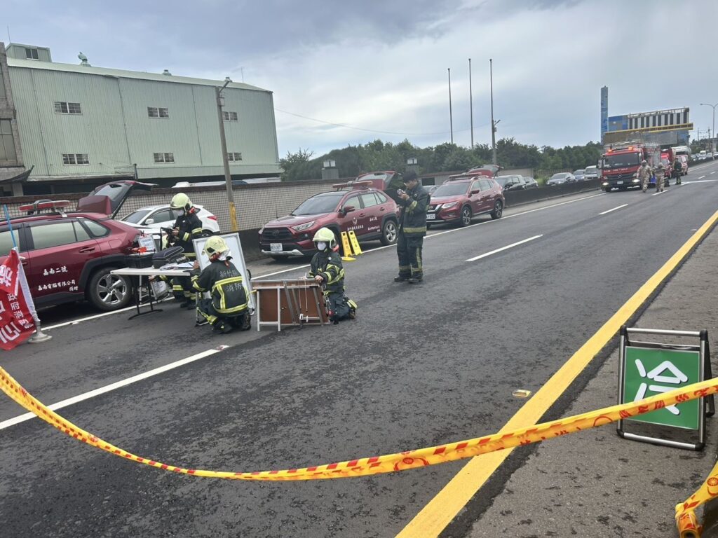 新竹縣竹北市西濱路二段263巷4號,19日上午6時許發生化學槽車與砂石車車禍,據報案人表示有氫氟酸外洩,消防局已派遣第一大隊、豐田、工業及二重化災處理車前往搶救,目前現場已劃分警戒區及封閉單向車道,目前該處南下路段封閉,請用路人車提前繞道,並耐心接受引導。