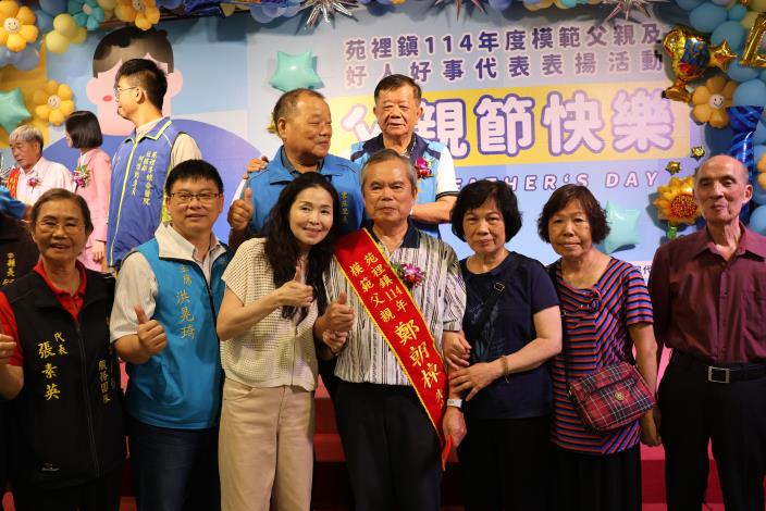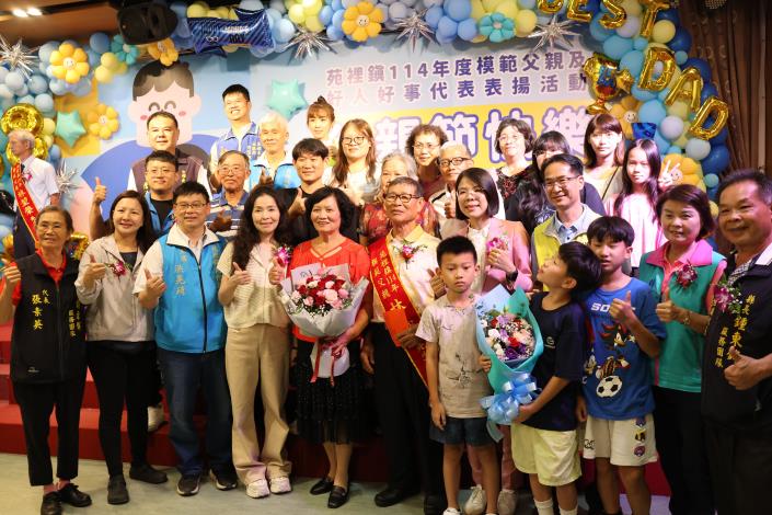 苑裡鎮公所7月19日舉辦114年模範父親暨好人好事代表表揚活動,苗栗縣長夫人陳美琦到場恭賀,祝福所有爸爸們「父親節快樂」,並感謝家眷熱情參與,各個都以爸爸為榮讓人十分感動,期許好人好事代表的事蹟能夠作為大家的榜樣,在父親對家庭的堅持、付出,及善心人士對弱勢、社區的貢獻,讓社會更加幸福、美滿。