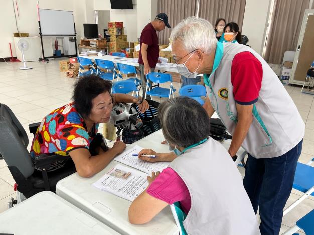 部分長者年邁不識字、無人協助填表的情況,社會局特別招募七位文書志工支援現場,其中4名志工來自南瀛公教退休人員協會,隊長林思薇女士表示,過去曾服務於公務體系,此次主動報名參與災區支援行動,希望透過一己之力,協助高齡長者順利完成相關補助申請。另3名為透過志工媒合平台投入的志工,也希望透過自身的力量,協助災民。