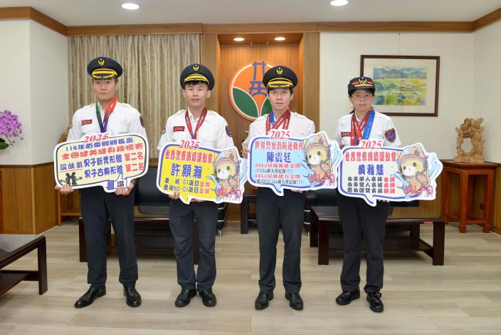 苗栗縣政府消防局隊員許顥瀚、陳震廷、黃雅慧3人於6月27日至7月6日期間前往美國伯明罕參加「2025年第21屆世界警察消防運動會」,在柔術、桌球、握推、健力等4個項目脫穎而出斬獲亮眼成績,勇奪6金1銀的佳績。另消防隊員温欣凱於7月5日參加「114年苗栗縣縣長盃全國健美健身錦標賽」,在「男子新秀形體組」與「男子古典形體組」皆取得第2名佳績。