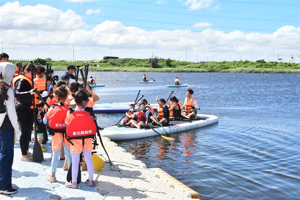 王縣長表示,縣政府從7月5日至8月10日在白色海豚屋旁的慶安水道舉辦「彰濱~海FUN一夏」慶安水樂園活動,每逢假日都有SUP立式划槳板、水上自行車、獨木舟、龍舟板SUP等活動,這場公益體驗活動,特別開放給關懷家庭及孩子們,約1百多人來體驗水上運動,讓他們走出戶外體驗水上活動,也藉此推廣水域安全教育,特別感謝直立版運動協會與海上救生協會的協助,以及所有投入其中的教練與社工夥伴,讓這場活動不只是單純玩水,更融合了教育、陪伴與溫暖關懷的精神,謝謝老師們對於孩子們的照顧,也謝謝各界善心人士的持續協助,讓孩子在暑假期間能夠正向學習,逆境向上。