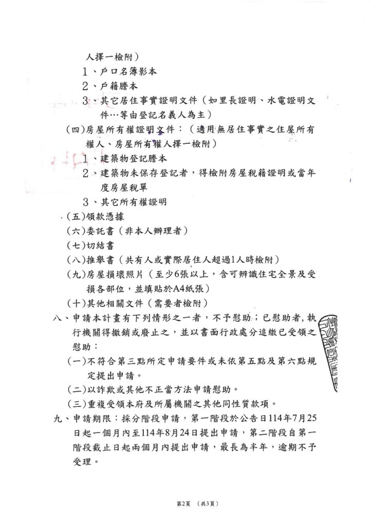 - 第二階段:114年8月25日起兩個月內提出,最長申請期限為半年(至115年1月24日止)