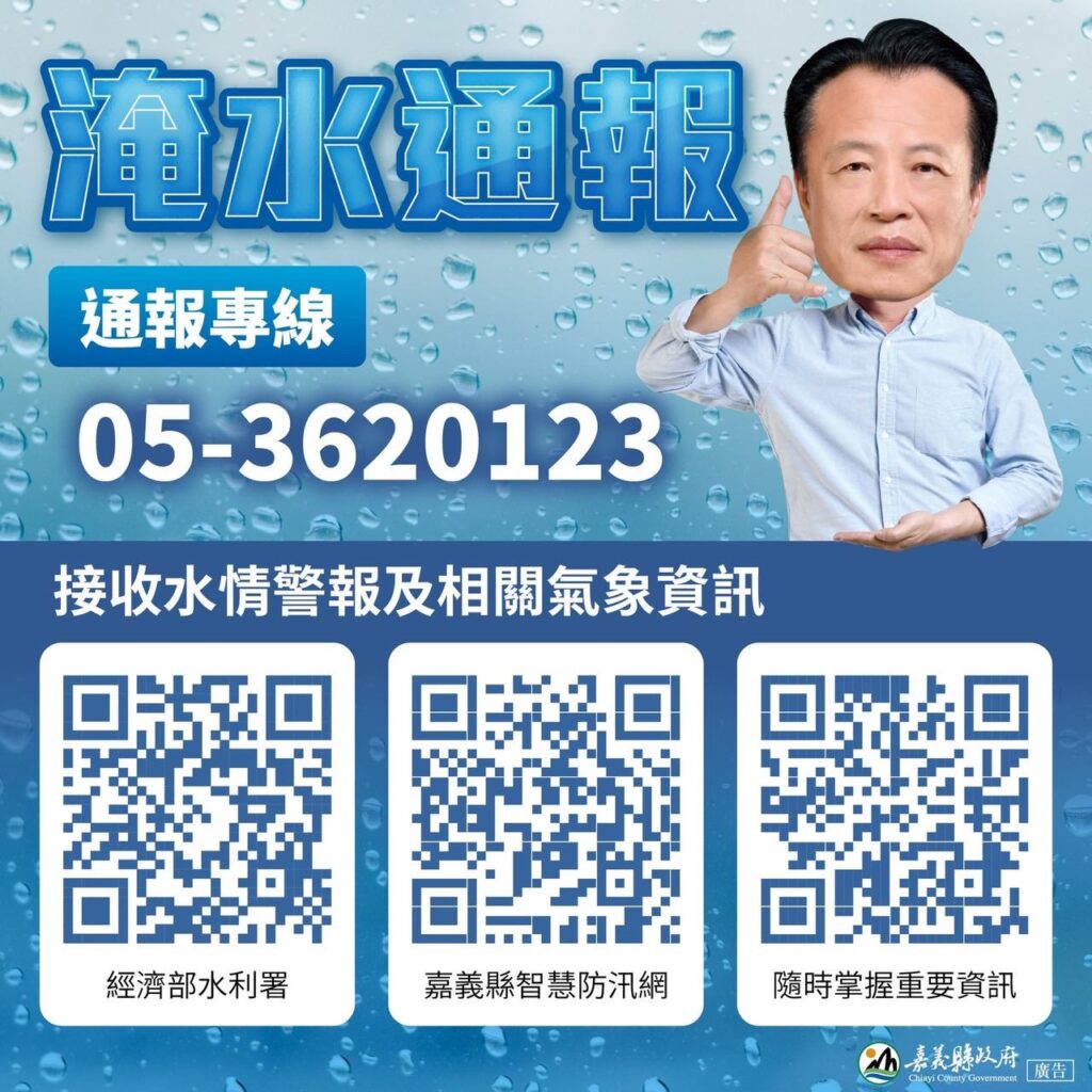 受低壓豪大雨影響,嘉義縣政府今日(7/28)停止上班、停止上課。