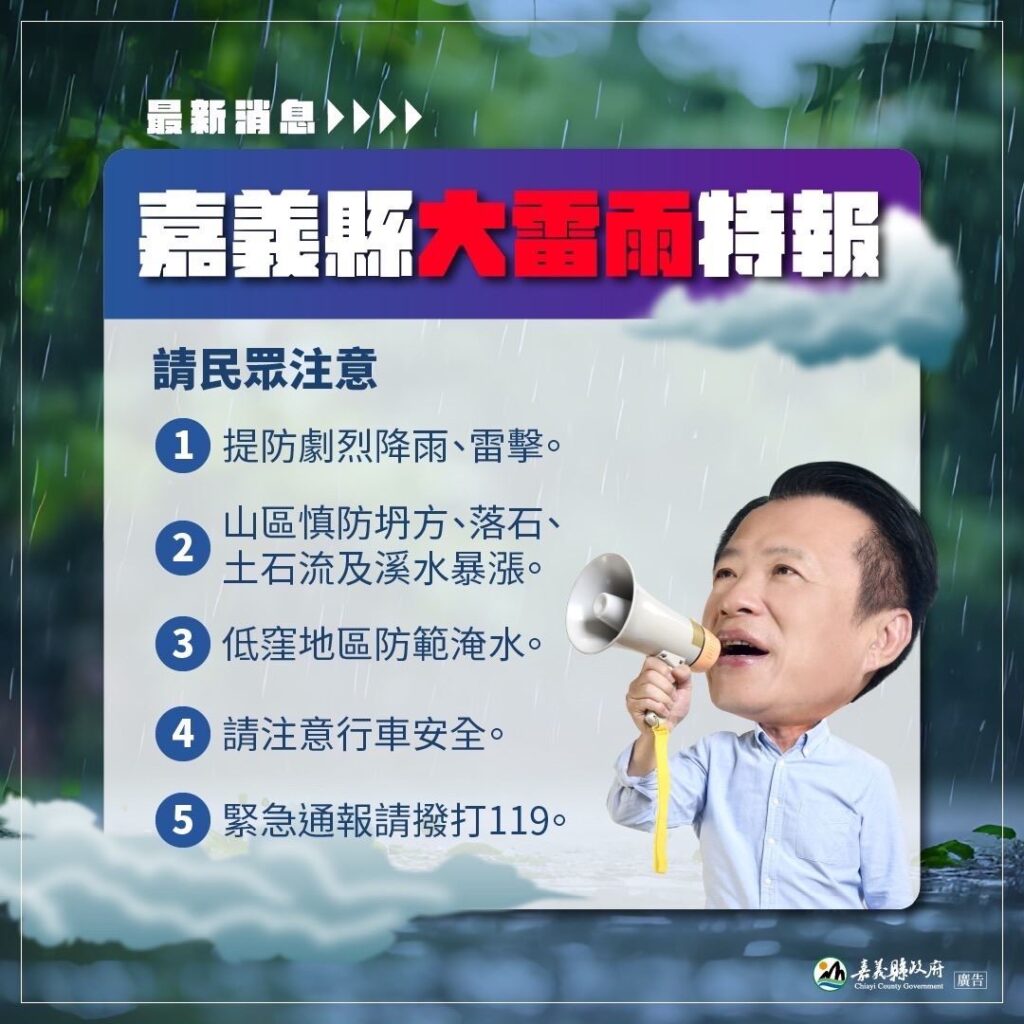 嘉義縣7月28日停止上班、停止上課!公車全線停駛(含幸福巴士、幸福小黃)、YouBike場站暫停營運